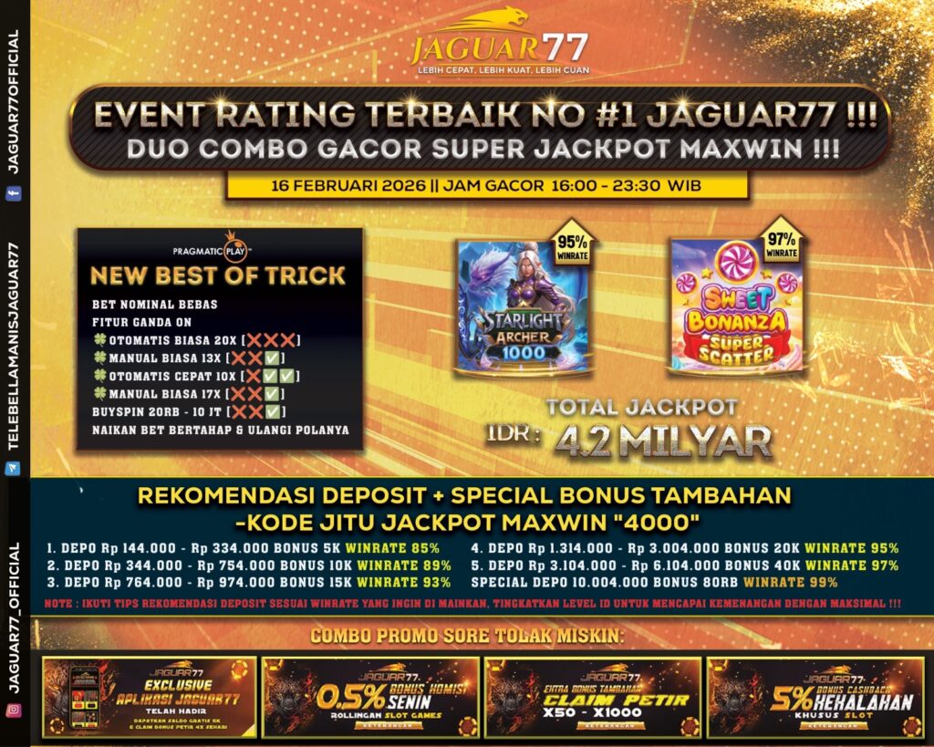 Jaguar77 – Situs Resmi Di Indonesia yang sudah Terpercaya Aman 100%. Gabung sekarang dan rasakan jackpot tanpa batas setiap hari!